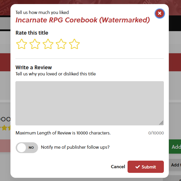 - Im folgenden Pop-Up-Fenster musst du eine Startbewertung auswählen und kannst dann deine Bewertung mit bis zu 10000 Charakteren abgeben