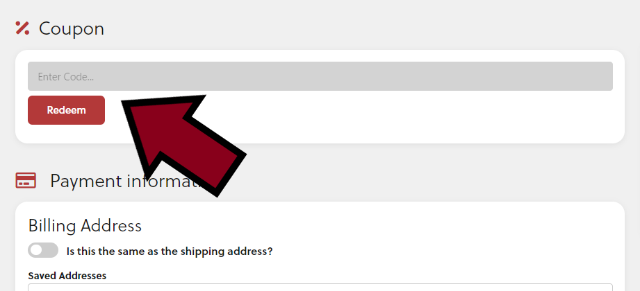 - In der Mitte der Seite findest du die Sektion Coupon: